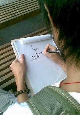 同学们触景生情,不由得拿出笔描绘这美丽的景色。