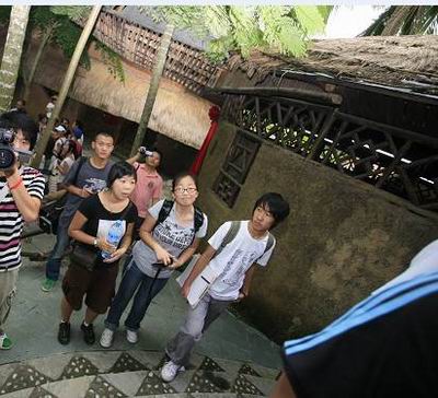 保亭田园槟榔谷现有黎苗村庄、蚩尤山寨、森林公园等项目。是一个集旅游、休闲、度假、考察学习的好去处。所以,我们选择了民族风情浓厚的槟榔谷作为学习采风的基地。