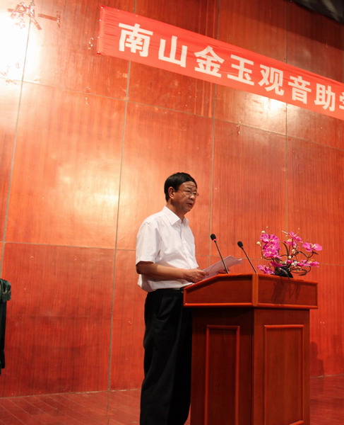 三亚香山金玉观音文化艺术有限公司一直关心并积极参与社会公益事业,南山金玉观音助学金就是该公司为艺术分院贫困学生设立的专项助学金。三亚香山金玉观音文化艺术有限公司以德善之举展示了公司以人为本、文化为先、从心做起的卓越的管理理念和服务永无止境、造福天下苍生的企业文化精神。该公司对我院莘莘学子始终如一的资助向我们诠释了他们的博爱与对社会的那份责任,更让每位学子懂得了感恩与奉献。相信每一位受到资助完成梦想的艺术学子都会铭记着这份关爱,永记着这一难忘的瞬间,用我们的实力和能力更好地奉献社会、回报社会、造福社会。