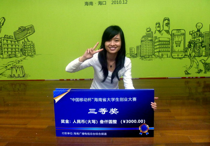面对访问时王蕾同学说到:“在这么多的参赛队伍中我和我的伙伴很荣幸地获得了三等奖,作为三亚学院艺术分院的学生,我们都感到无比的荣耀,之所以能获奖我想这除了自身努力学习专业知识外还与老师对我们孜孜不倦的教导以及辅导员对我们这个团队的帮助与关心是密不可分的。另外,在此我非常感谢我们身后的一股强大的精神动力,它一直指引着我们前进的方向、扶持着我们战胜困难、支持我们走向成功。而这动力的来源便是我们亲爱的校园,我们所在的艺术分院。在分院的不断更新的教学理念下,在学校丰厚的教育资源里,我们不断吸取知识经验,不断前进!前进!继而才能在这层层作品中,突围而出。在今后的日子里我和我的团队将会更加坚定地向前走,把我们的创业项目在进一步扎实的做下去,就像我们的参赛口号——有念想,就有花开的时候。”
