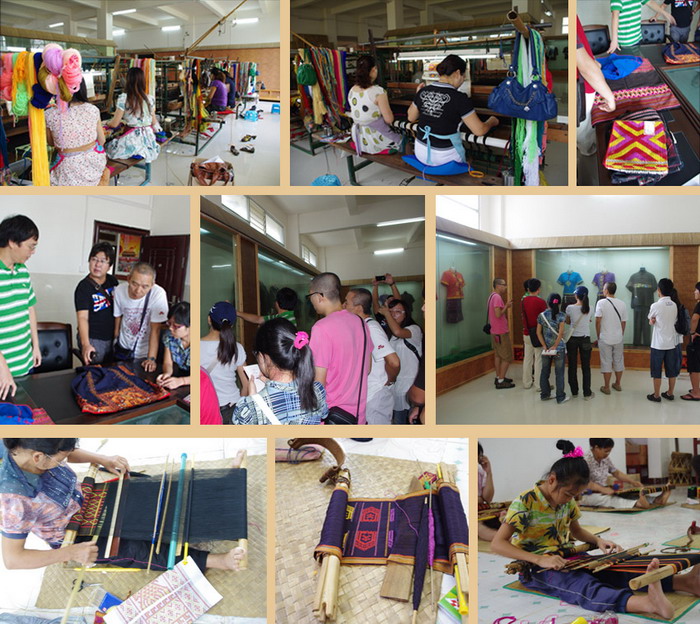 夕阳西下的时候,同学们走进了一个叫冲山镇的织绣村,那里有一个叫“酒娘”的黎族阿婶办的“黎锦”手授培训班,有许多邻村的妇女席地而坐,在学习最传统的“黎锦”织造技法。踞腰织机是黎族最原始的纺织方法:先把棉花或木棉花一丝丝地捻接成线,然后用一小竹条捆卷着,要卷纱时,放在腿上一搓,卷纱竹枝在空中旋转,逐渐把纱卷成绽,然后再一根根地编织成布,挑针、引线,劳动强度极大。这种古老的“黎锦”编织方法过去往往是自家母女口口相授。在纺织技术已经高科技发展的今天,仍然有这么多的黎族妇女不怕劳累,一分一寸一米地学习,可见,在她们内心深处对本民族传统的偏爱。有个14岁的小阿妹,据说是在黎族三月三织锦大赛上拿到了第三名的好成绩,她埋头织着,偶尔抬头看一看窗外,眼神中闪着朴实和清纯。是的,她们编织的不仅是黎锦,更是编织出对生活、对生命、对未来的无限期盼和热望……