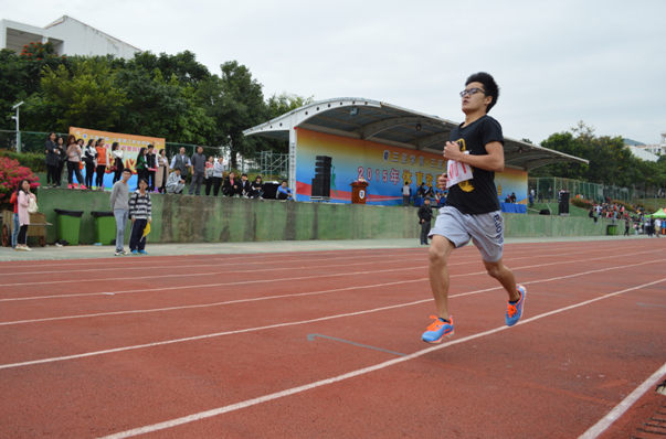 在三亚少有的凉风习习的日子里,一年一度的体育欢乐节来了。12月18日上午,随着发令枪的响声,学生组男子四百米小组赛开始了。银河线路检测中心2014级汽造班的马海同学参加了这项比赛。