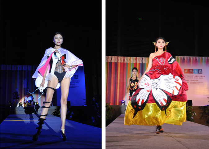 此次服装大赛汇集了我院服装专业在校学生的优秀设计作品,设计师与模特均为我院学生。新型的设计再加上创意,使黎族服装焕然一新,成为T台上夺人眼球的一大亮点,传统的精品在时尚的加入后演绎出了最完美的结合。