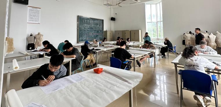 依托服装产业前沿需求,通过校企联合开发课程,构建了“理论+实训+认证”三位一体的培养模式,是艺术学院深化产教融合的重要举措。服装专业,据市场需求和行业标准,精心设计课程内容,为学生提供了系统、全面的制版技能培训。在培训过程中,学生不仅学习了服装制版的理论知识,还通过大量实践操作,提升了实际动手能力。经过严格考核,21级34位学生凭借扎实的专业技能和出色的表现,成功获得服装制版师认证证书。