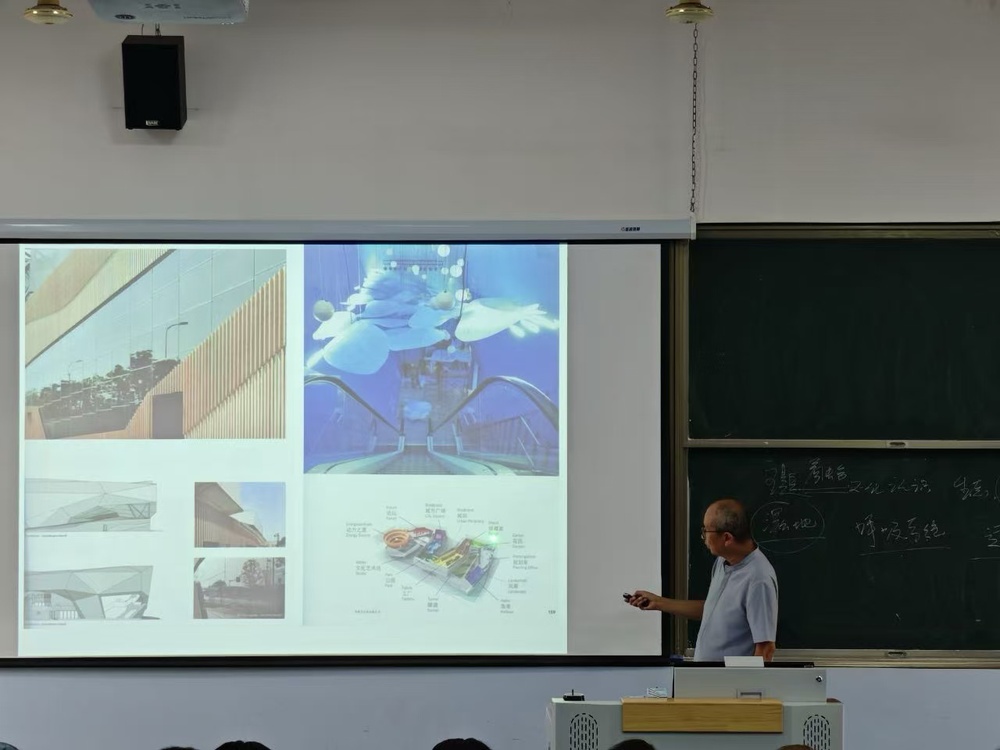 讲座中,吴晓淇教授以今年适逢大阪世博会为契机,将2010年上海世博会中的一些国外展馆建设作为切入点展开对比分析。他详细阐述了这些展馆在设计理念、空间布局、材料运用等方面的独特之处,深度探寻设计创新的意义与价值