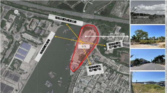 本方案设计,从城市更新的全景视角下对口袋公园的设计方法与策略进行梳理与应用。着眼于崖州老城区这一独特的领域,对口袋公园设计进行了深入的研究。本方案设计选址崖州老城核心区约0.5公顷的边角地块,场地北侧为疏港大道高速公路,场地西侧为三亚崖州中心渔港,场地东侧与南侧为住户棚户区,周边老旧居民区,公共空间极度缺乏。