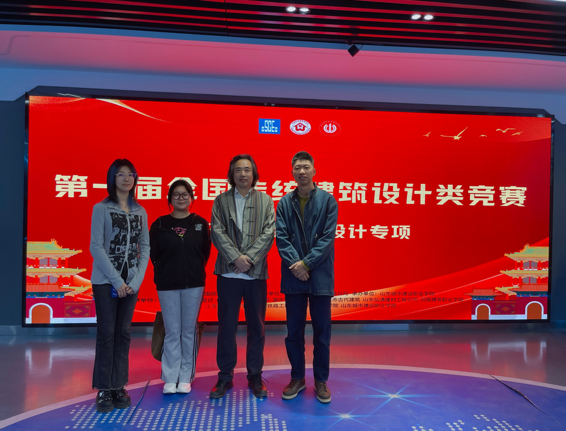2025年3月,第一届全国传统建筑设计类竞赛于山东城市建设职业学院圆满收官。本届竞赛以“亳都项目深化设计专项”为主题,由中国民族建筑研究会指导,中建八局第二建设有限公司装饰公司主办,山东城市建设职业学院承办,吸引了全国9个省区市的14支职工组及学生组队伍同台竞技。三亚学院环境设计专业师生团队(指导老师:陈琳、陈晓龙;学生成员:冯佳敏、徐佳乐)凭借扎实的专业功底与卓越的临场表现,荣获学生组第三名,展现了高校在古建传承领域的创新实践能力。