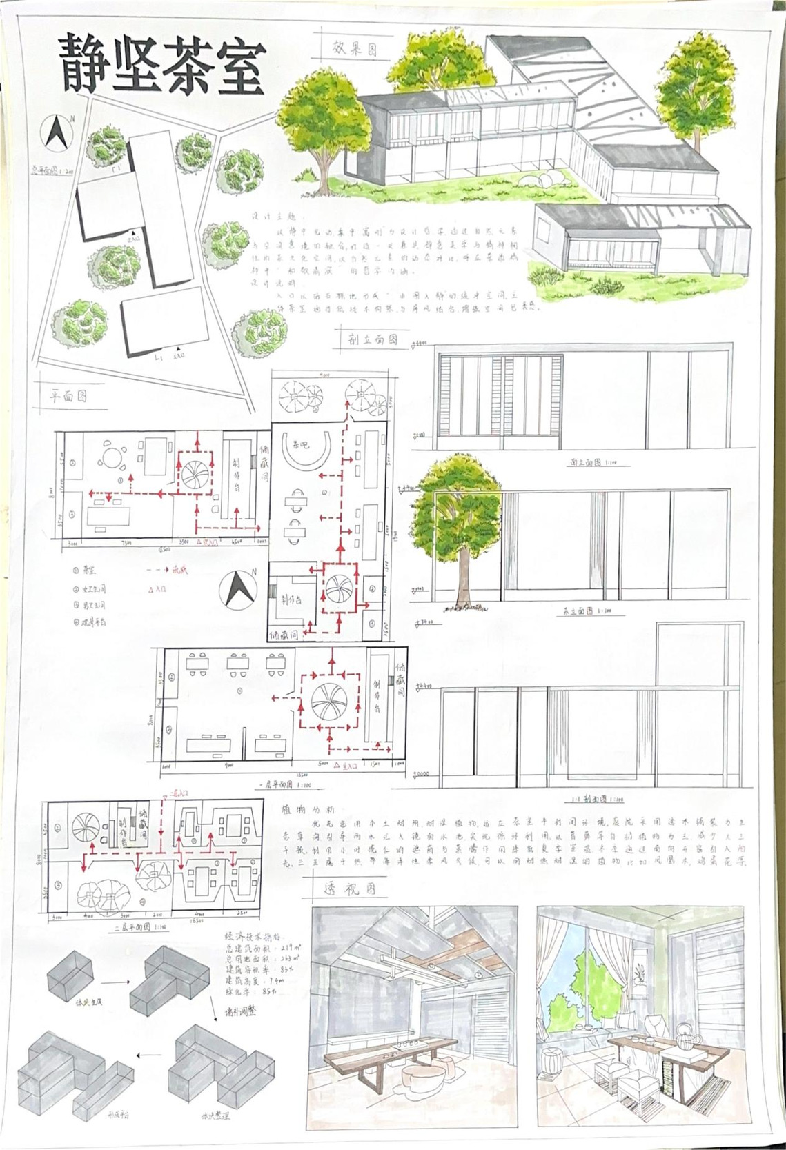 《建筑设计初步》课程是我校国家级一流本科课程之一,也是我院环境设计、城乡规划、风景园林环境设计专业学生必修的一门学科基础课,课程设置重在“基础”和“全面”,采用讲课与课堂作业相结合的教学模式,其教学目的是通过基本知识与相关理论的讲授,结合先例分析、茶室设计等课程作业练习,初步掌握建筑设计的基本表达方法和技能,对标“五种品质”精神,培养学生的观察分析能力与专业思维能力、设计创新能力、专业学习能力与表达能力(专业表现技能与口头表达能力),进而提升学生的综合专业技能、开拓学生的专业视野、塑造学生的专业品格,培养学生的职业素养,为后续专业课的学习打下坚实的基础。