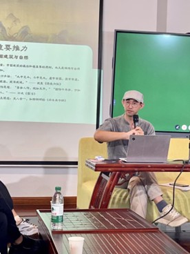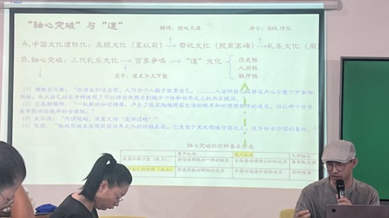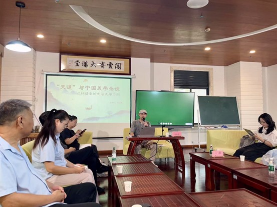 马老师的讲座首先从“轴心突破”展开,阐明“轴心突破”与“天道”,以及“天道”与生活的关系,然后再以林语堂的生活美学为核心,通过将林语堂对中国建筑美学和田园生活美学的梳理,将其与中国“天道”文化互相印证,阐明天道与中国美学的密切关系。
