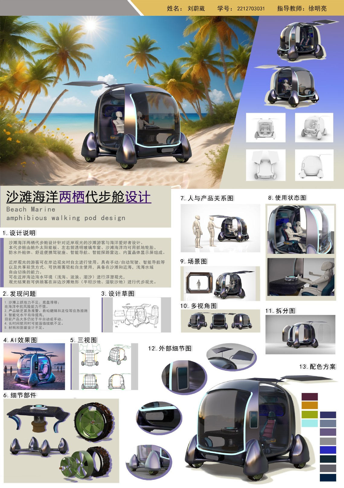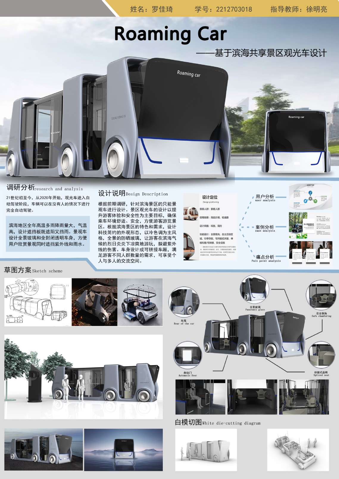 课程负责人指出其生动体现了事理学对设计创新的驱动,学生精准捕捉了未来出行之“事”(需求与挑战),并通过系统思维与科技赋能求得解决之“是”(设计方案),展现了整合技术、形态与体验的系统设计能力。本次课程以未来“出行方式”为创新画布,成功引导学生融合严谨设计思维、前沿AI工具及深切人文关怀于实践。这些覆盖通勤、无障碍、物流的创新方案,不仅是扎实的教学成果,更是三亚学院产品造型设计专业致力于培养洞察需求、融合科技、优化体验的设计人才的有力证明,为学生未来从事汽车设计或交通工具设计奠定了理论和实践基础。