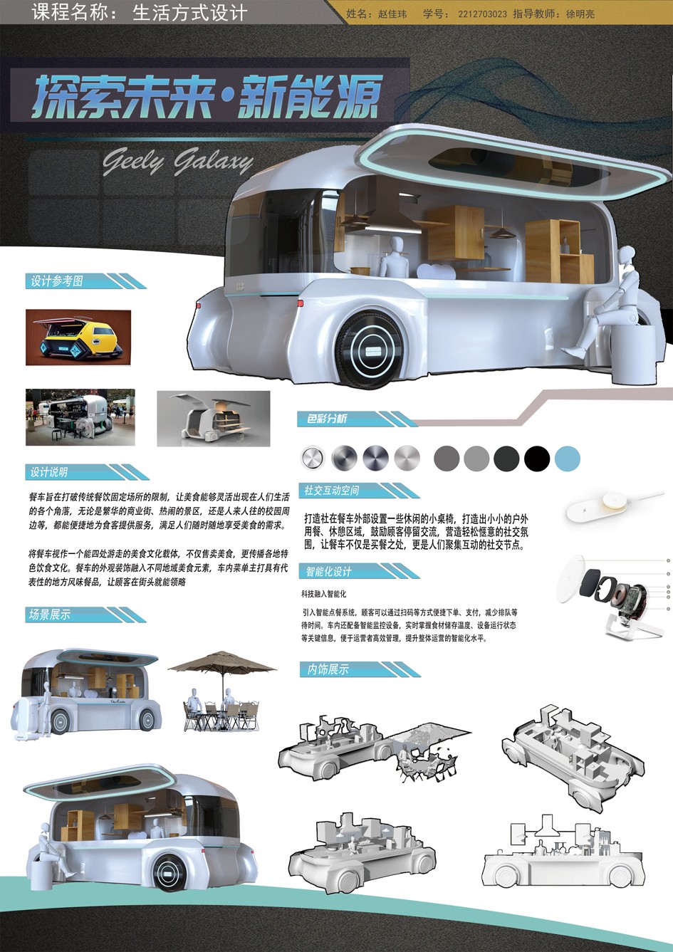 三亚学院产品造型设计专业《生活方式设计》课程圆满结课。本课程融合心理学、设计程序与方法、系统设计等学科基础,创新引入事理学中物理、型理、人理、事理的研究方法,将设计实践置于实”事”求“是”的逻辑框架下,有效促进了学生感性思维与理性思维的融合,并成功催生了聚焦未来“出行方式”的系列创新成果。本学期,产品设计专业2201班以“未来出行场景设计”为核心主题,系统开展教学与实践,严格遵循“场景洞察-设计定位-草图构思-AI驱动-数字验证”全流程,深入探索各类交通场景创新。学生作业成果丰硕,涵盖通勤、无障碍及物流三大领域。