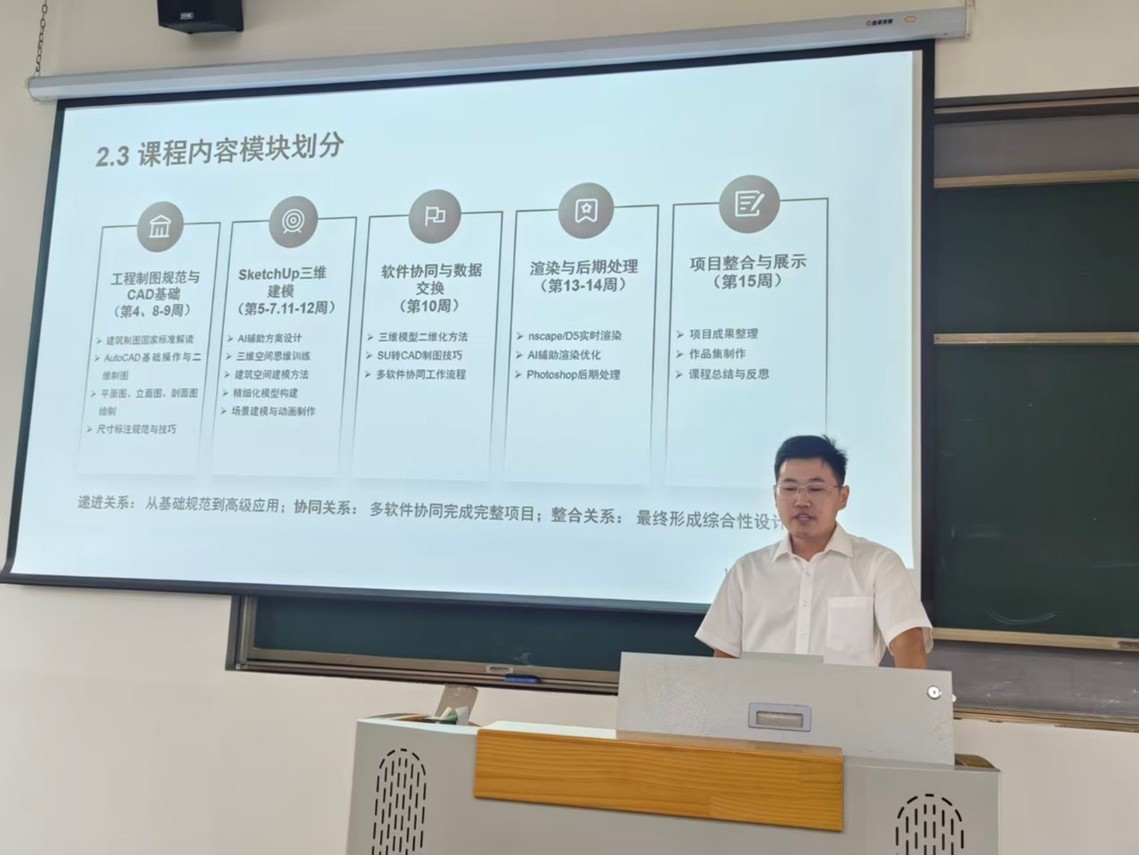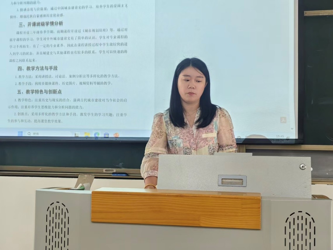 本次说课活动主要围绕场景式教学设计、教学思路与方法、课程考核方式、课程间联动展开,内容主要涉及“说教学目标”、“说教学重难点”、“说教学方法”、“说学情学法”、“说教学过程”、“说课程思政”、“说课程特色”等方面。在说课过程中现场气氛热烈,老师们积极参与讨论,充分展现了环境与规划设计系教师在教学改革与课程建设方面的整体面貌。