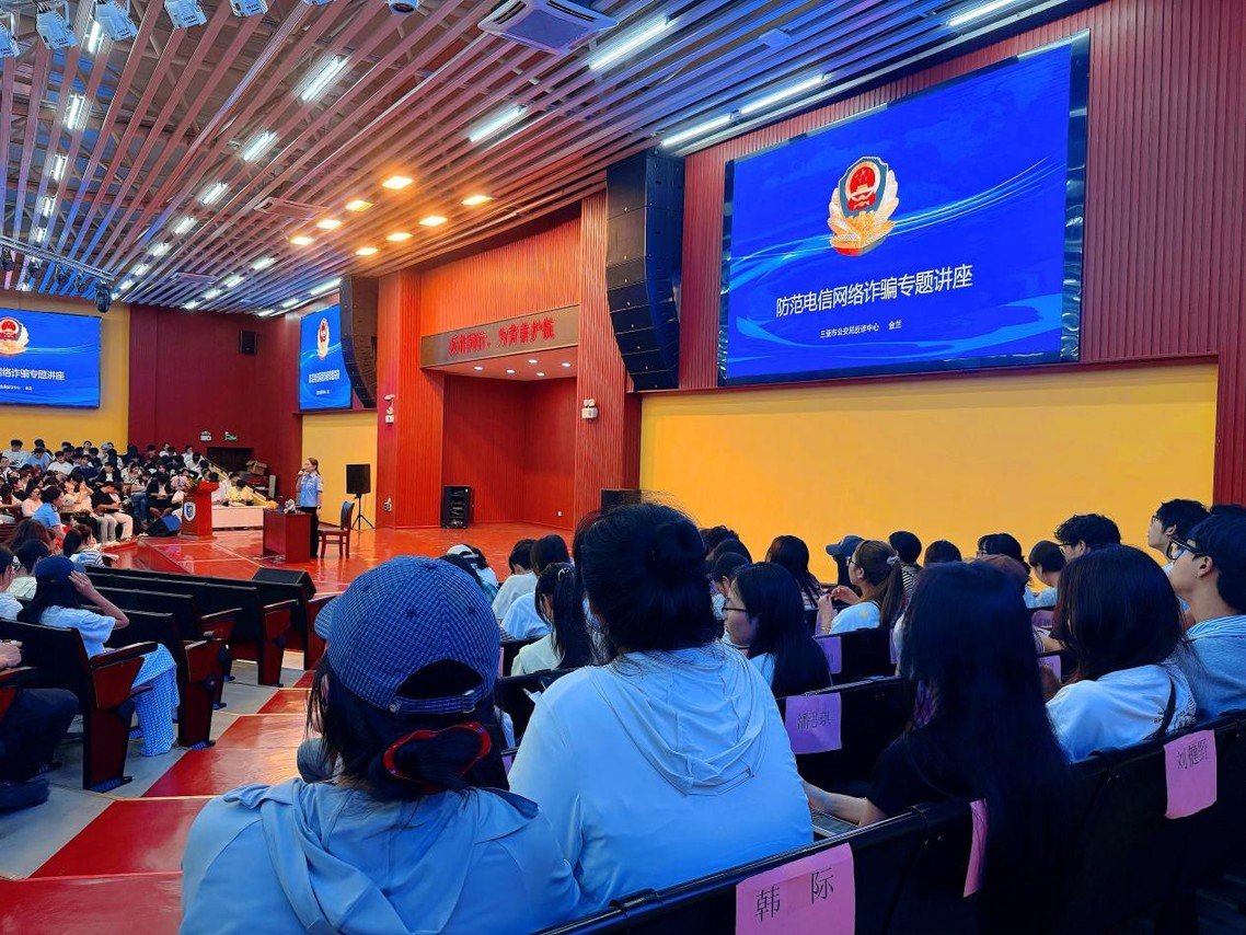 为有效提升学生防范电信网络诈骗的意识和能力,2025年10月15日下午,学校书会堂举办“反诈同行,为青春护航”专题反诈讲座,邀请当地警方反诈专家现场授课,我院杨硕老师带队,组织80余名同学到场聆听学习。