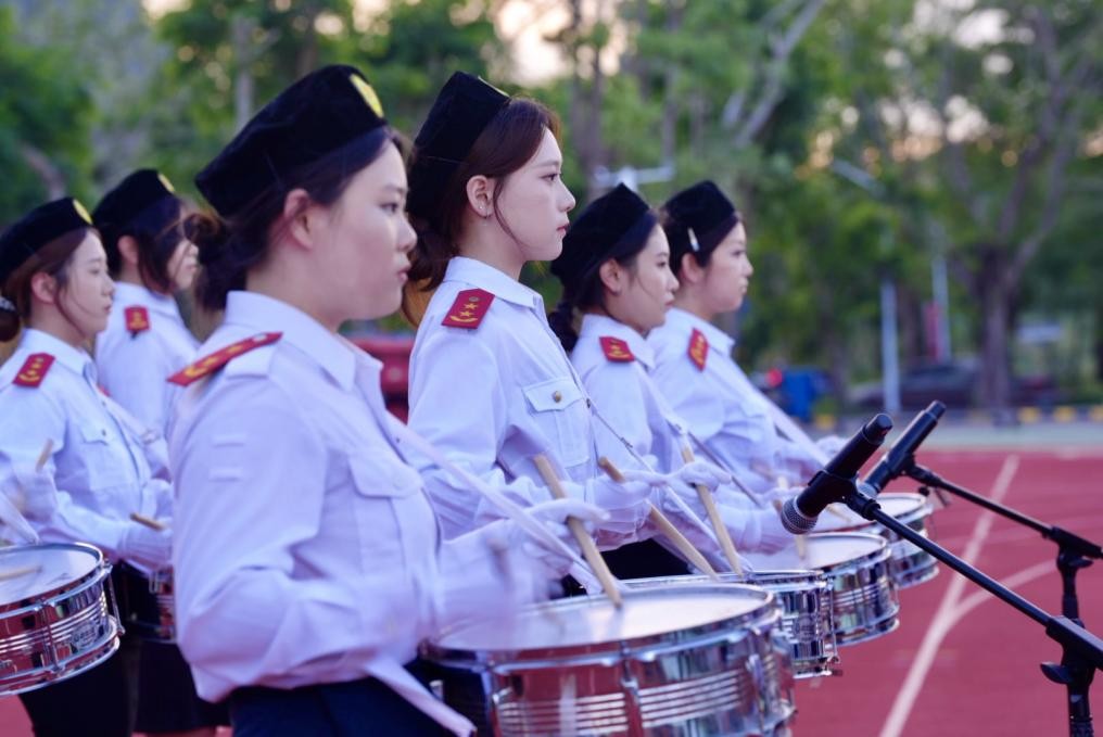 随后,校旗在激昂的鼓声中庄严入场,鼓点铿锵,象征着青春的脉搏与奋进的精神,也预示着2025级新生大学生活的正式启航。