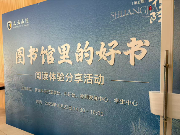 10月23日下午,一场以“图书馆里的好书”为主题的阅读体验分享活动在书德楼一楼鹭溪·艺境--USY人文艺术素养协同发展中心温馨举行。本次活动由新文科研究发展处科研处教师发展中心学生中心精心策划,旨在营造浓厚的阅读氛围,为书友们搭建一个交流思想、分享感悟的平台,吸引了来自校内数名阅读爱好者积极参与。