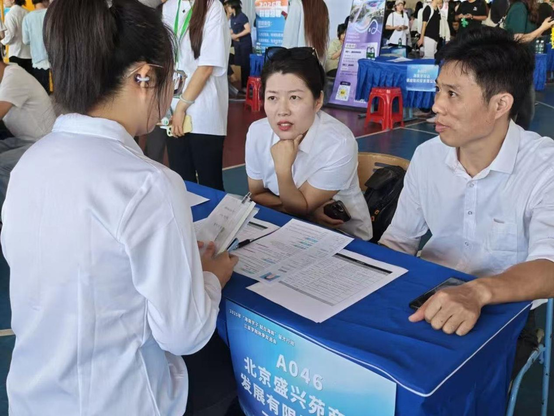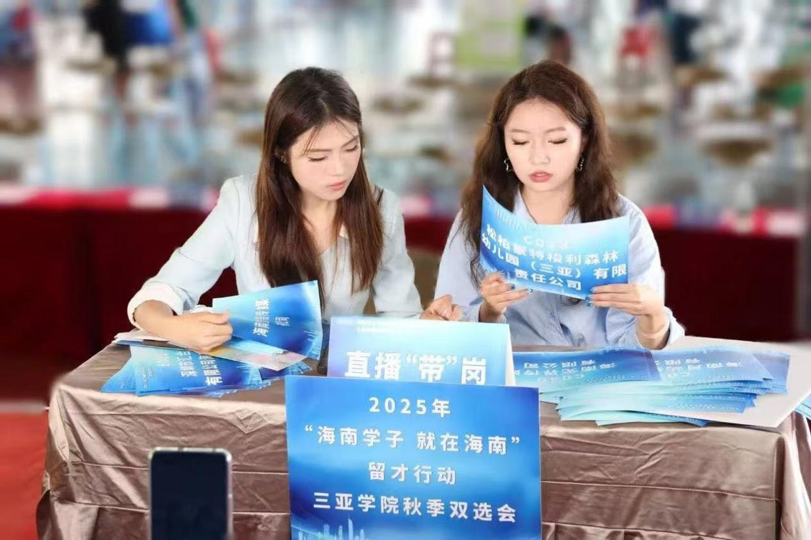 值得一提的是,本次双选会创新引入“直播带岗”模式。在学校搭建的统一直播平台中,三亚学院直播系师生组成专业团队,于现场负责“云端招聘间”的内容策划与摄制支持,通过学校招生就业视频号同步推送企业招聘信息。同时,双选会深度融合AI技术,借助“职业角色匹配度测试”智能分析学生技能倾向,为学子生成个性化求职报告,助力实现人岗精准匹配。
